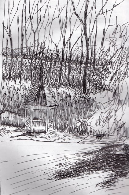 I’m also calling it an exercise in masking-out. I used liquid frisket for the tree and buds, masking tape for the window edges.